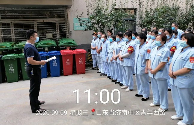 根据济南市卫健委下达的《关于开展卫生健康系统生活垃圾分类督导检查工作的通知》项目积极响应,并开展相关培训,落实生活垃圾及医疗垃圾分类、收集、转运、暂存工作并同创城复审工作紧密结合,同时对项目员工进行相关知识考核,落实两个百分百。